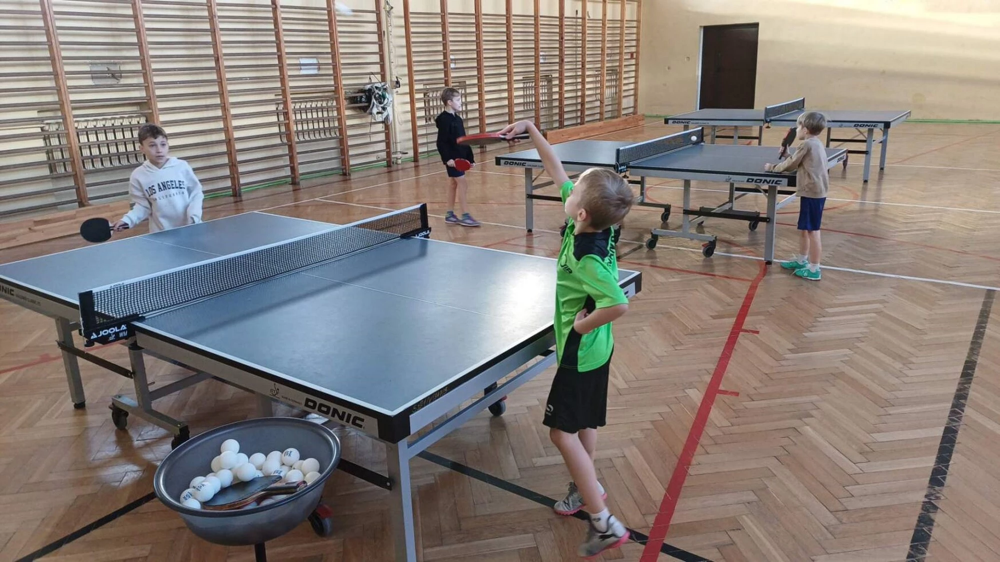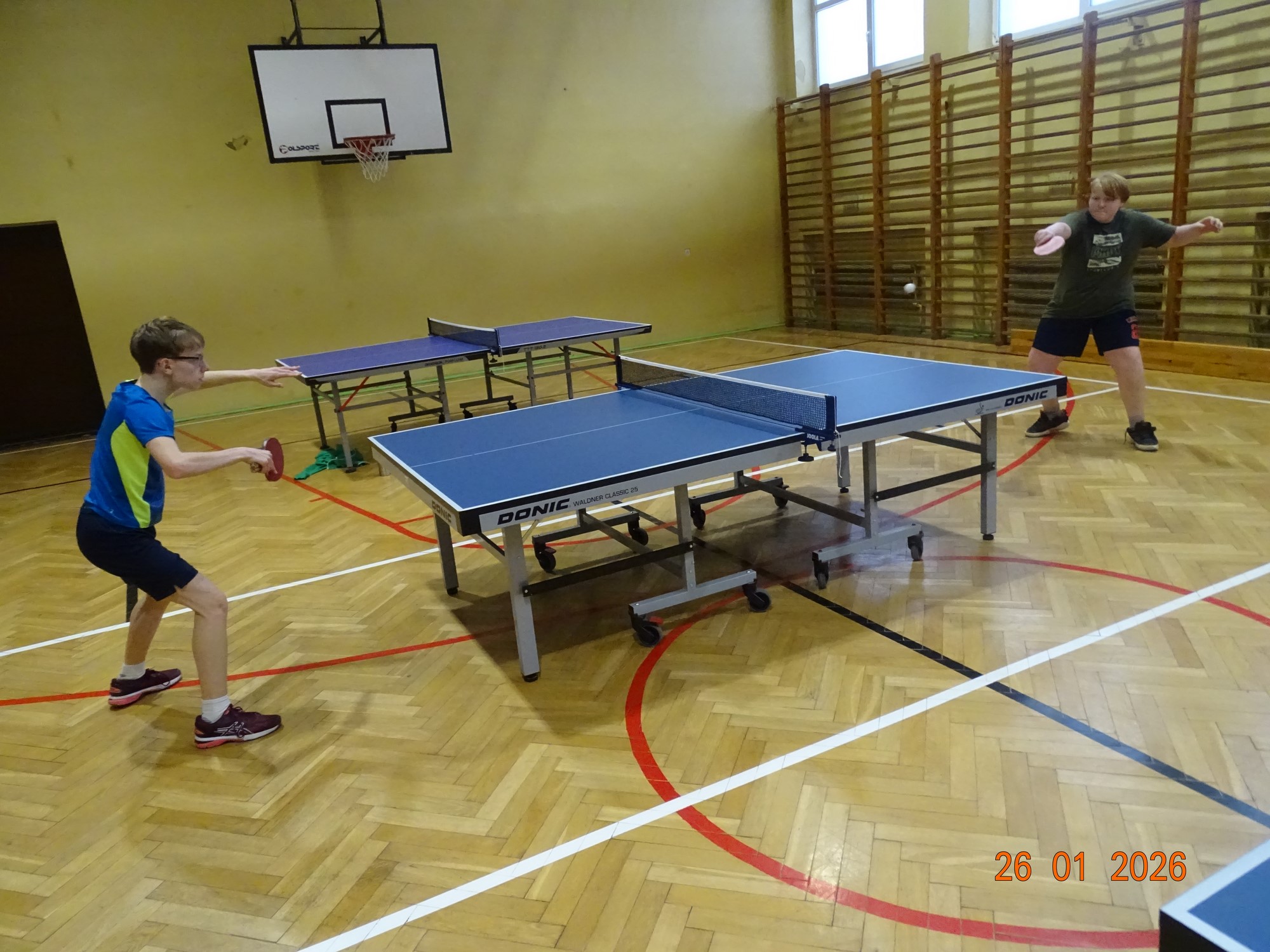 Równolegle na mniejszej sali odbywały się zajęcia z tenisa stołowego prowadzone przez Janusza Ludwiczaka.