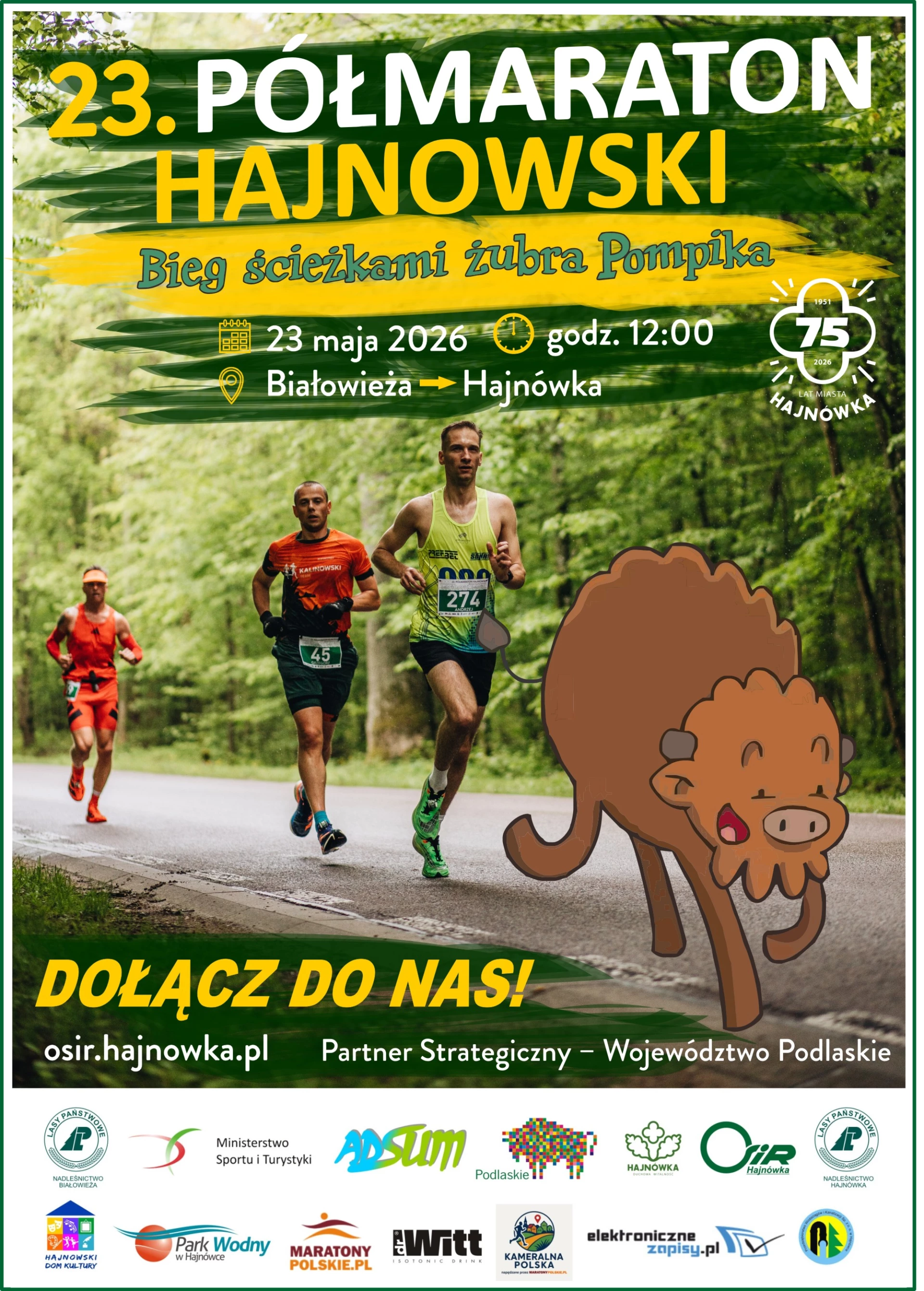 Przypominamy, że trwają zapisy do udziału w 23 Półmaratonie Hajnowskim, który odbędzie się 23 maja 2026r. w Hajnówce/Białowieży!