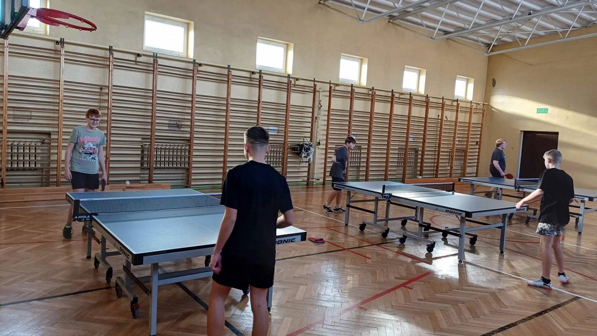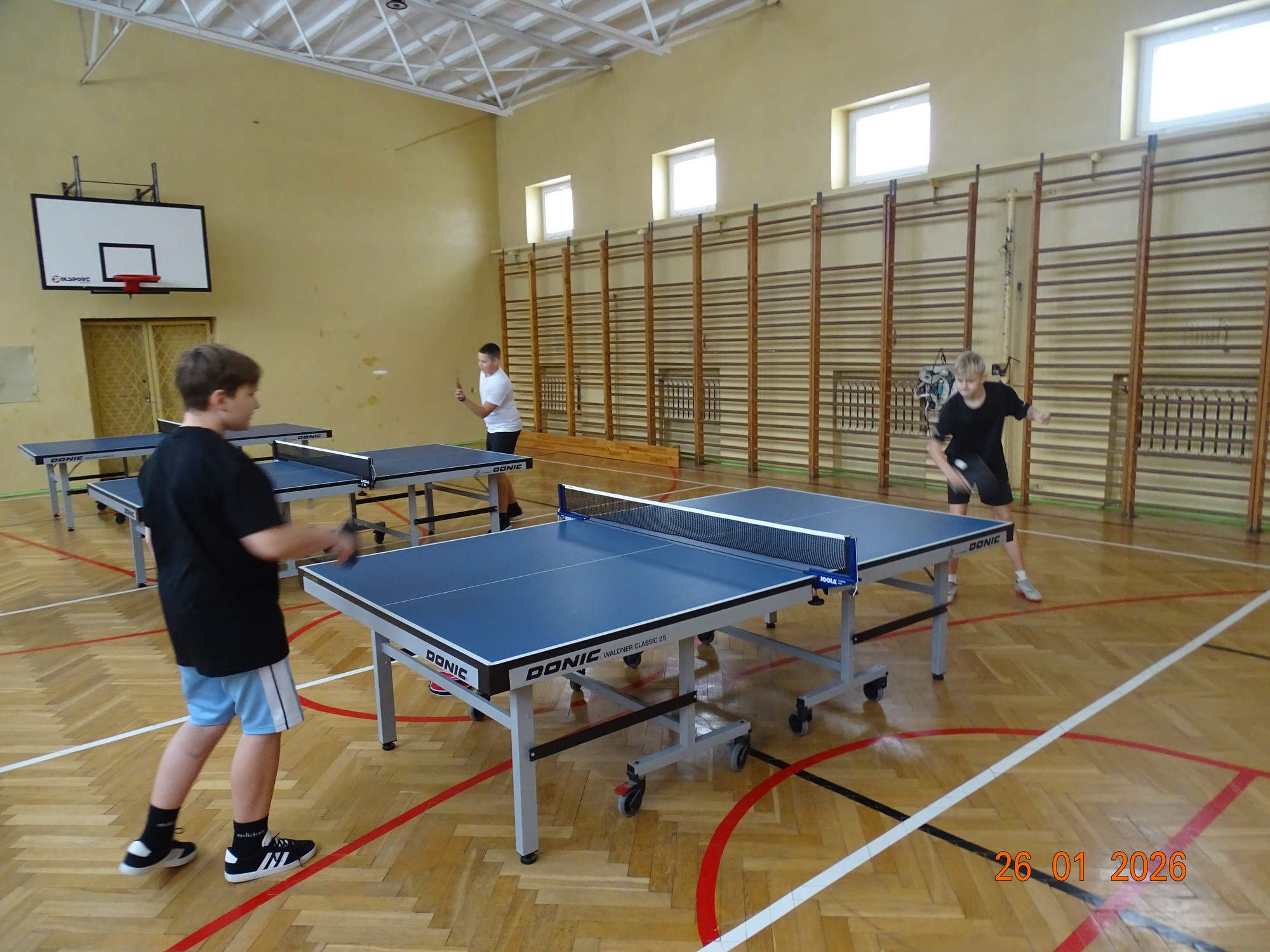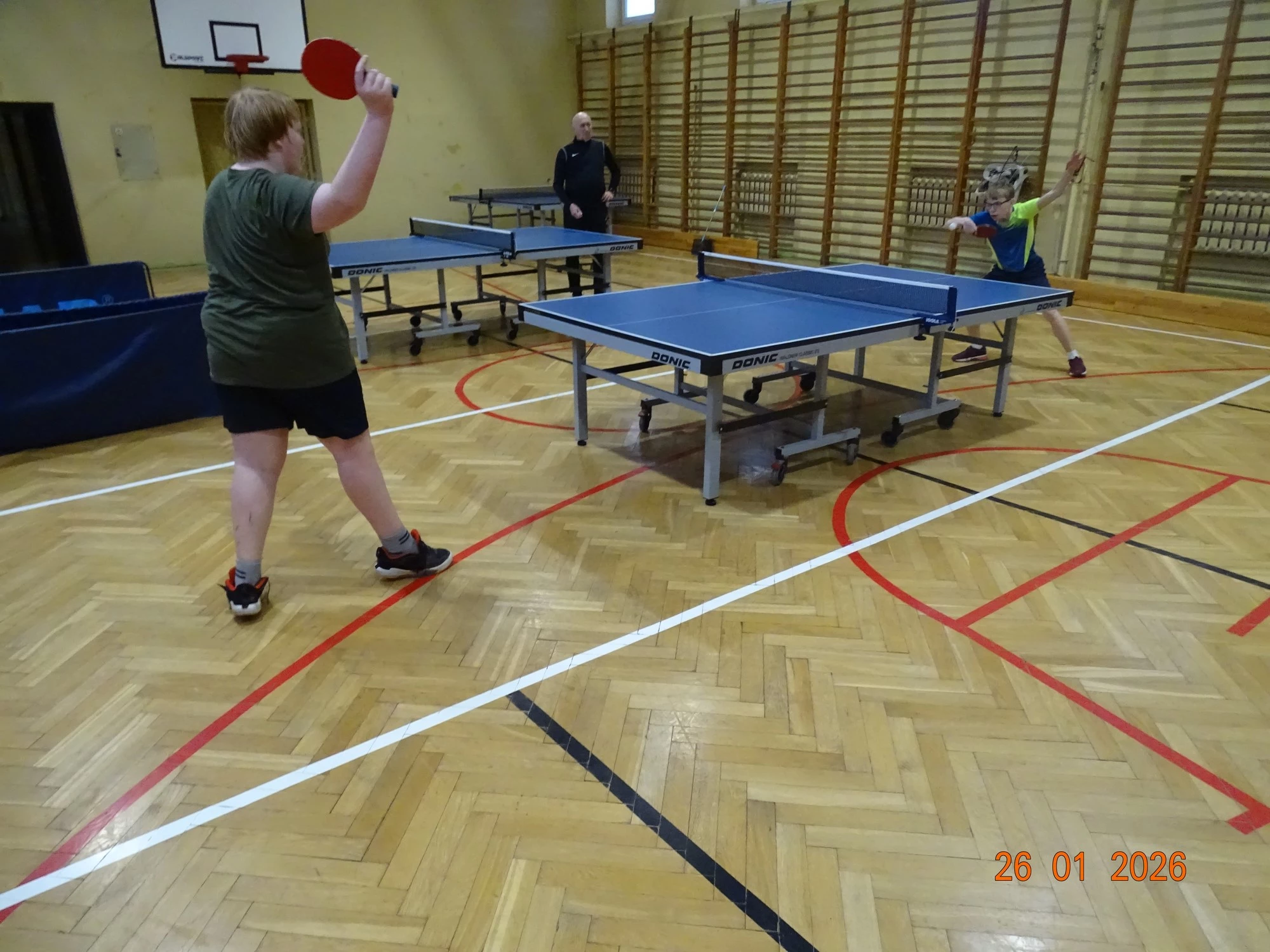 Równolegle na mniejszej sali odbywały się zajęcia z tenisa stołowego prowadzone przez Janusza Ludwiczaka.