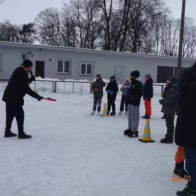 W pierwszy piątek ferii przygotowaliśmy Gry i zabawy na lodzie, w których dzieci i młodzież rywalizowały w trzech grupach w wyścigach sprawnościowo-szybkościowych. Oczywiście nie była tu prowadzona żadna klasyfikacja ponieważ wszyscy byli zwycięzcami. Na koniec zmagań wszyscy wybrali się na wspólne ognisko oraz drobny słodki poczęstunek.