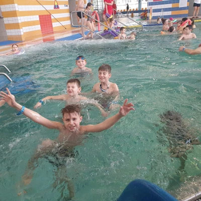 Po intensywnych zajęciach w pierwszym tygodniu ferii, wszyscy chętni w sobotę mogli skorzystać z wypoczynku i odbudować swoje siły korzystając z basenów Parku Wodnego.