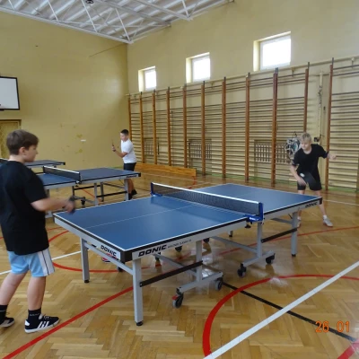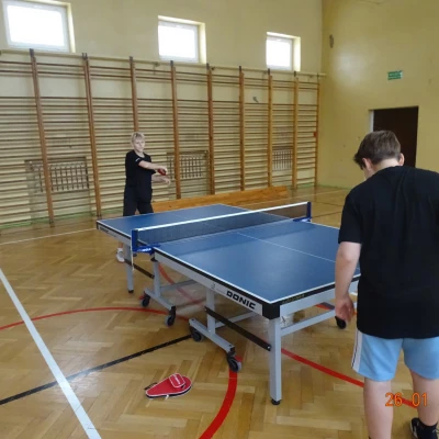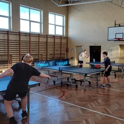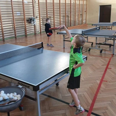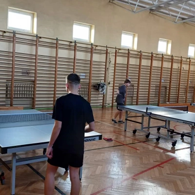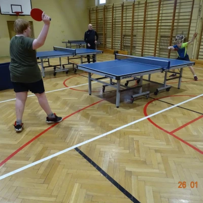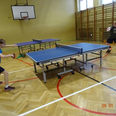 Równolegle na mniejszej sali odbywały się zajęcia z tenisa stołowego prowadzone przez Janusza Ludwiczaka.